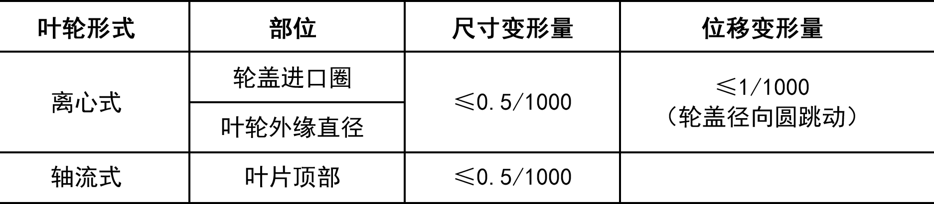 3、根據(jù)超速試驗(yàn)前作好的標(biāo)記和數(shù)據(jù),檢查其變形量并應(yīng)符合下表規(guī)定。