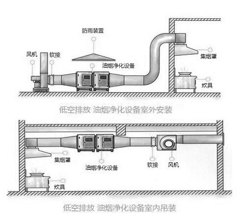 排煙管的設(shè)計和安裝不科學(xué),常常造成廚房排煙系統(tǒng)不順暢,直接影響到油煙凈化器的使用。