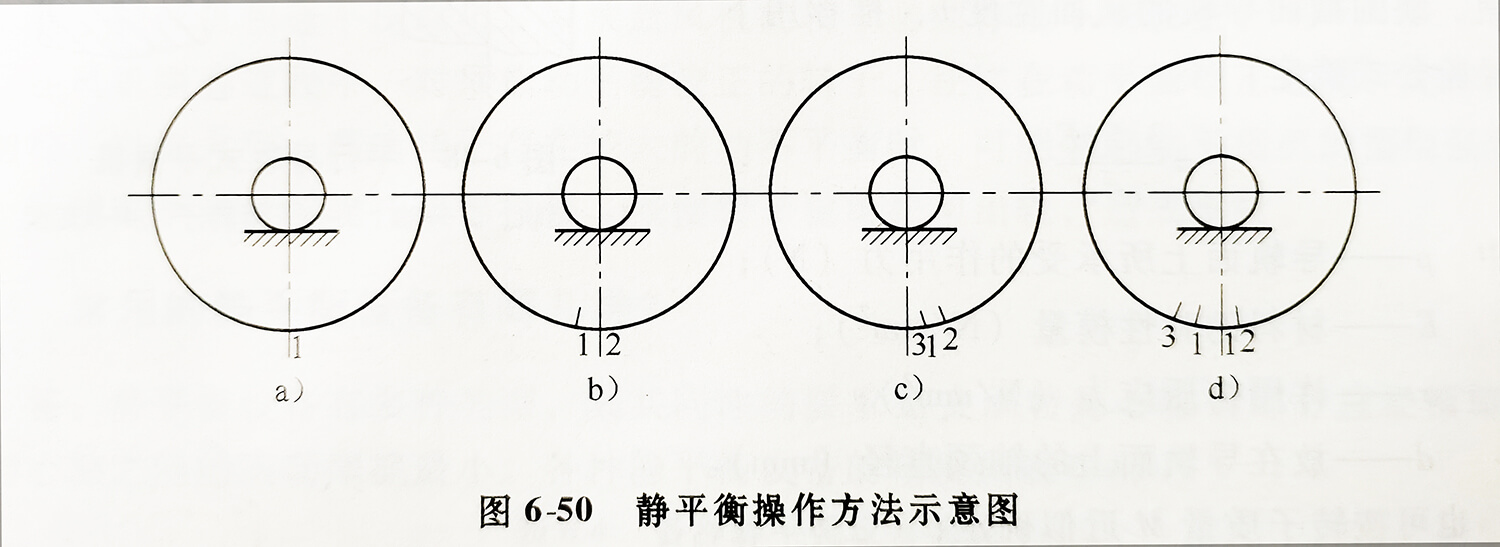 怎樣校正風機轉(zhuǎn)子的靜平衡?導(dǎo)軌式靜平衡機是一種靈敏度較高、結(jié)構(gòu)簡單、操作方便、使用普遍的設(shè)備,以它為例,來說明校正鳳機轉(zhuǎn)子的靜平衡操作方法。將轉(zhuǎn)子輕放在平衡機的軌道上(或圓盤夾角內(nèi)),使轉(zhuǎn)子水平軸線垂直于軌道軸線。用手扳動轉(zhuǎn)子,使其任意停止。在轉(zhuǎn)子下面作一標記“1”,如圖6-50a。為了消除摩擦阻力矩誤差,將轉(zhuǎn)子旋轉(zhuǎn)90°使標記“1”與轉(zhuǎn)子中心線成水平位置,然后放開,待停止擺動后,在此刻轉(zhuǎn)子的最下面作標記“2”,如圖6-50b。再將轉(zhuǎn)子向相反方向轉(zhuǎn)90°,同樣使標記“1”與轉(zhuǎn)子中心線成水平位置,放開,待擺動停止后,在此刻轉(zhuǎn)子的最下面作標記“3”, 如圖6-50c。如果標記“1”、 “2”、“3”點相重合,則偏重位置就在重合點處,否則,偏重位置就在標記“2”與“3”的中間,如圖6 -50d。