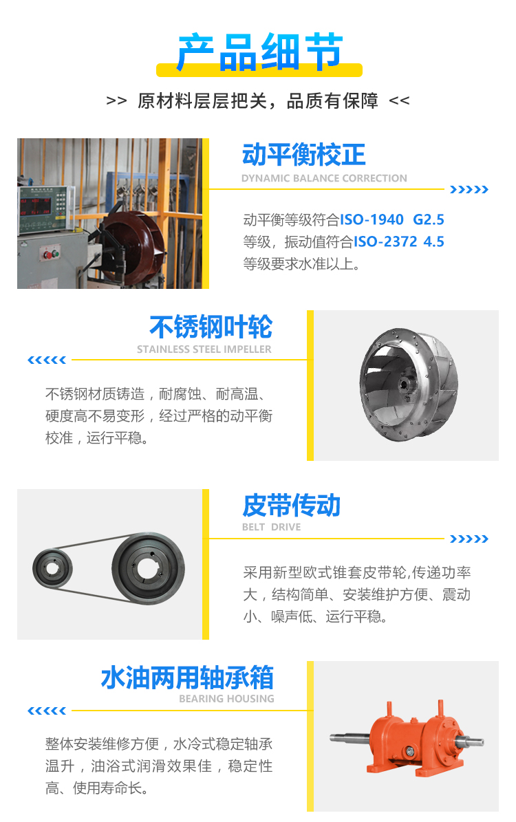 外殼及風輪采用不銹鋼風機材質(zhì)焊接而成,耐高溫,能有效防酸堿、防腐蝕