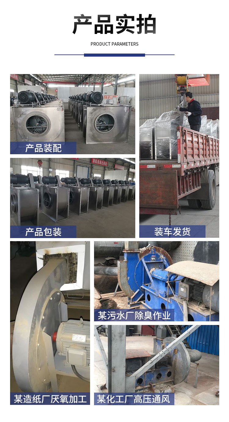 外殼及風(fēng)輪采用不銹鋼風(fēng)機材質(zhì)焊接而成,耐高溫,耐酸堿、防腐蝕