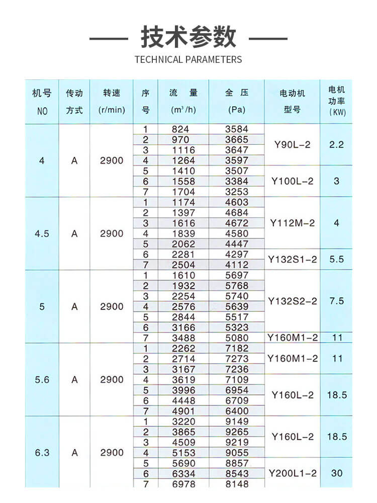 9-19型高壓離心通風(fēng)機(jī)一般用于鍛冶爐及高壓強(qiáng)制通風(fēng),并可廣泛用于輸送物料,以及輸送無(wú)腐蝕、不自燃、不含黏性物質(zhì)之氣體。介質(zhì)溫度一般不超過(guò)50°C,最高不超過(guò)80°C;介質(zhì)中所含塵土及硬質(zhì)顆粒不大于150mg/m3。主要由葉輪、機(jī)殼、進(jìn)風(fēng)口、傳動(dòng)部分組成。適用于鍛冶、玻璃、陶冶、無(wú)線電、電鍍、蓄電池等行業(yè)高壓強(qiáng)制通風(fēng)及糧食、飼料、礦粉等加工行業(yè)的物料輸送。