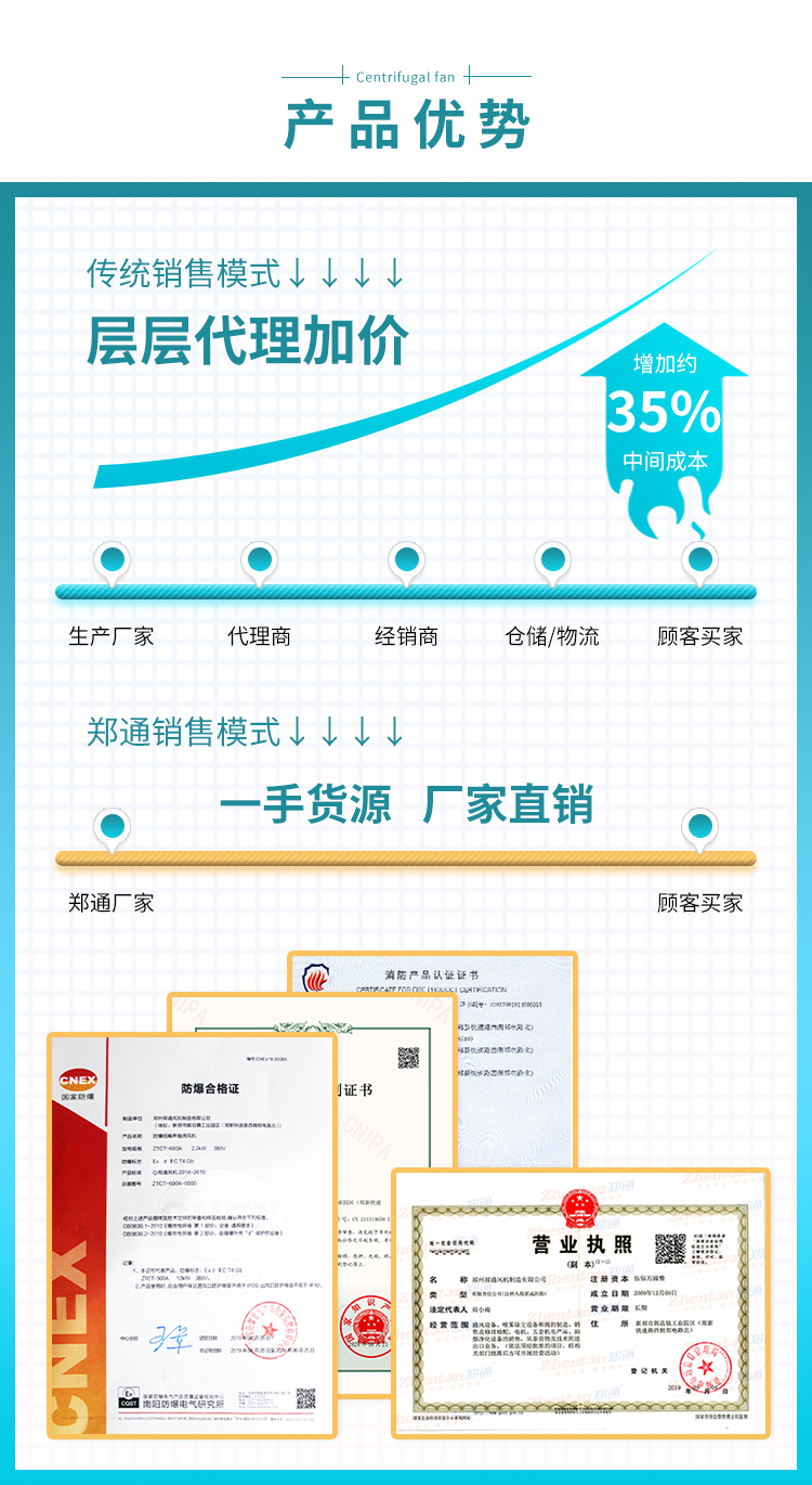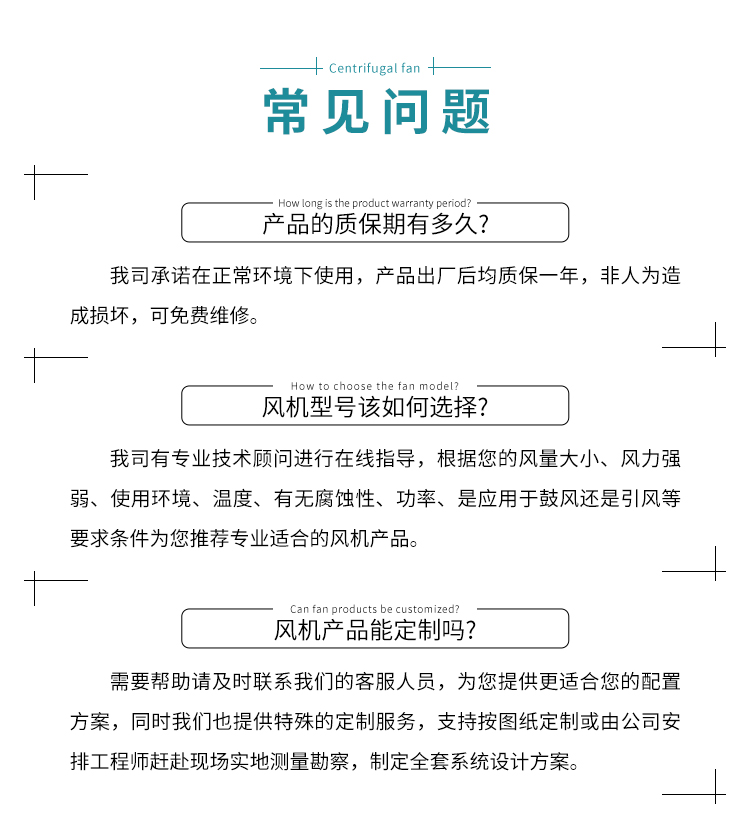 主要由玻璃鋼材質(zhì)制成,大機號也可以制成皮帶驅(qū)動,耐腐蝕性好、不易老化。噪聲低、重量輕。