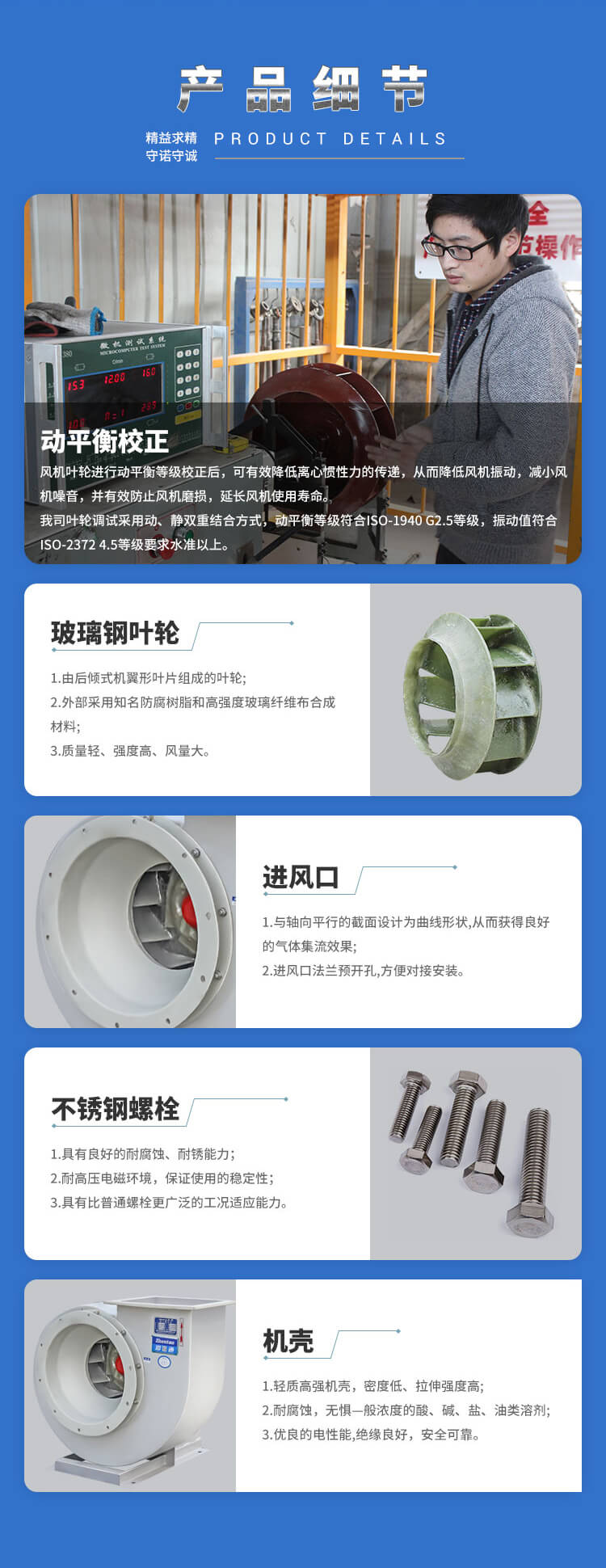 適用于化工、紡織、電鍍、實(shí)驗(yàn)室等場所排送含有一定濃度的酸、堿、鹽等腐蝕性氣體,也可以作為一般工廠的建筑物通風(fēng)換氣用