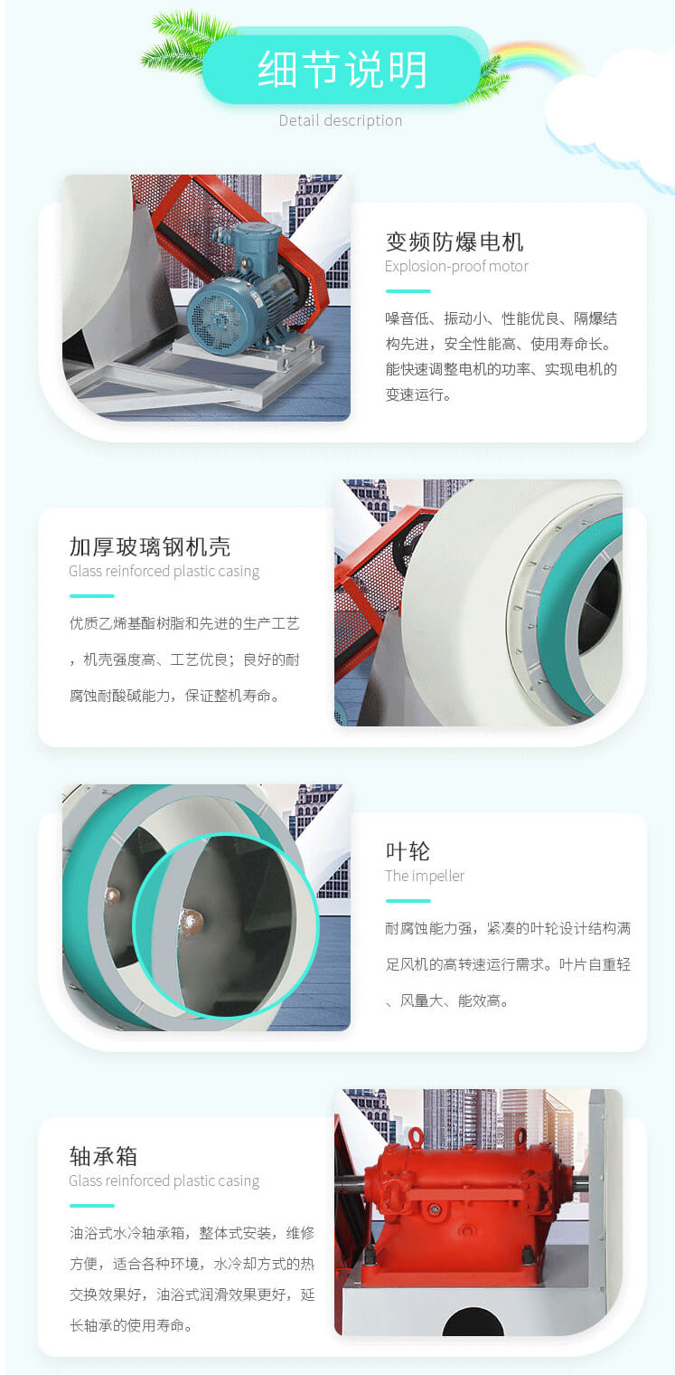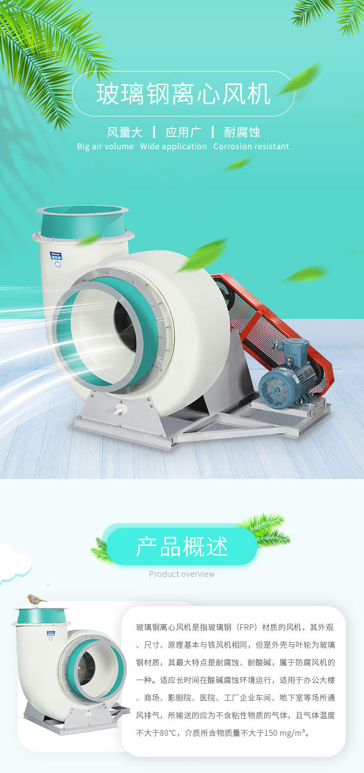 用于化工廠、紡織、電鍍、實驗室等場所排送含有一定濃度的酸、堿、鹽等腐蝕性氣體,也可以作為一般工廠的建筑物通風換氣用