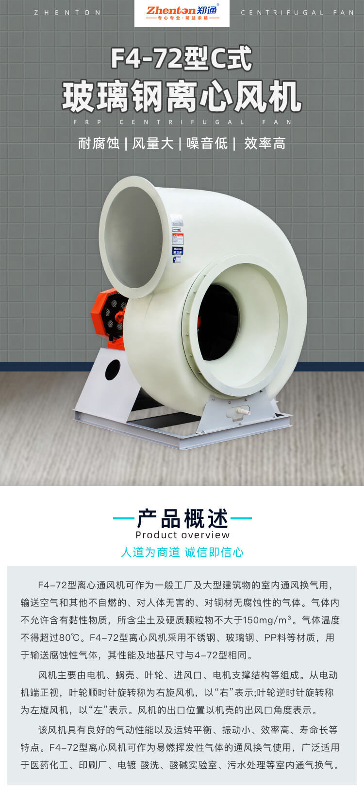 該風機具有良好的氣動性能以及運轉(zhuǎn)平衡、振動小、效率高、壽命長等特點。F4-72型離心風機可作為易燃揮發(fā)性氣體的通風換氣使用,廣泛適用于醫(yī)藥化工、印刷廠、電鍍酸洗、酸堿實驗室、污水處理等室內(nèi)通氣換氣。