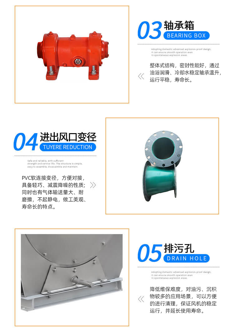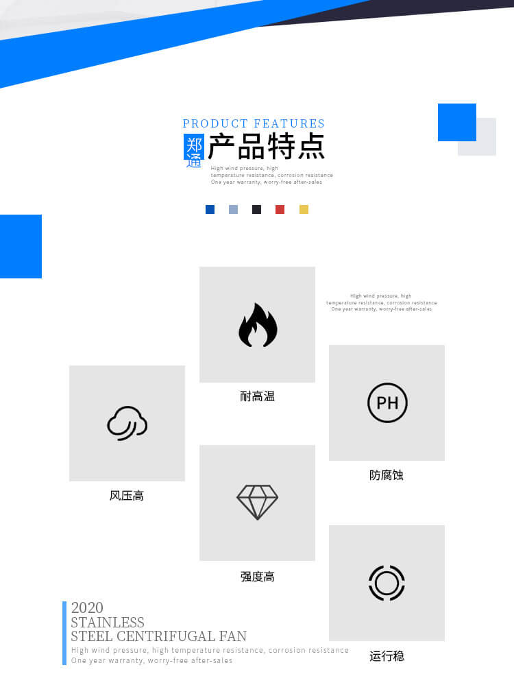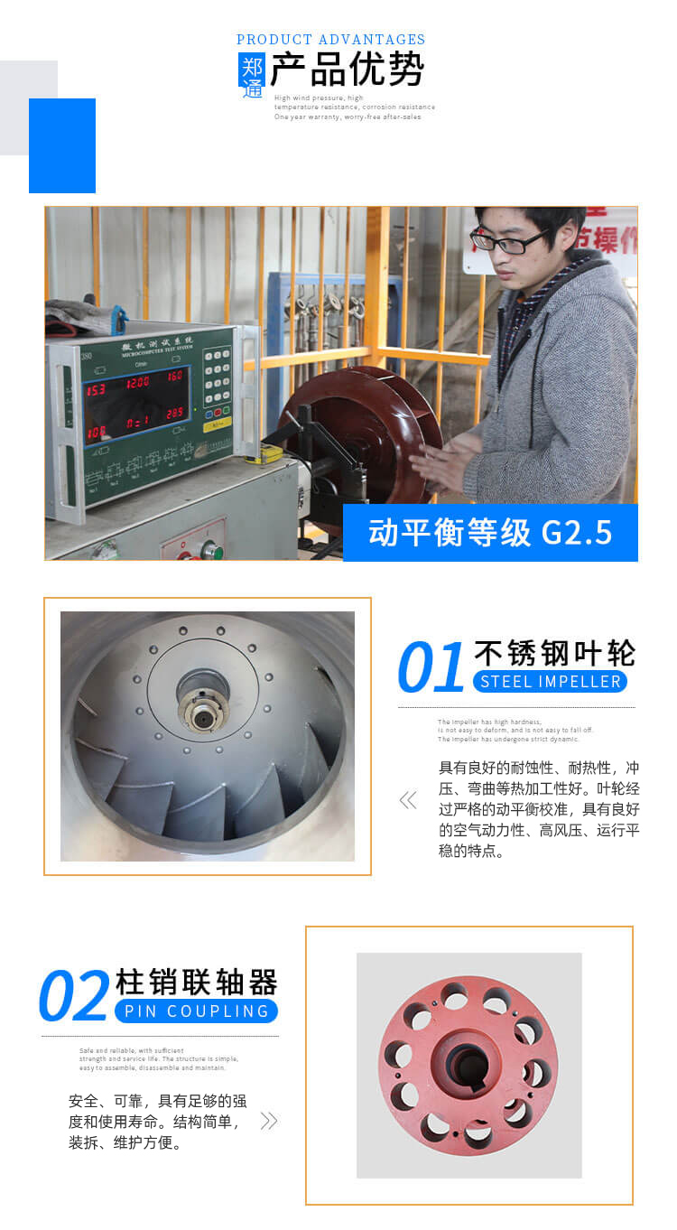 外殼及風(fēng)輪采用不銹鋼風(fēng)機(jī)材質(zhì)焊接而成,耐高溫,能有效防酸堿、防腐蝕。