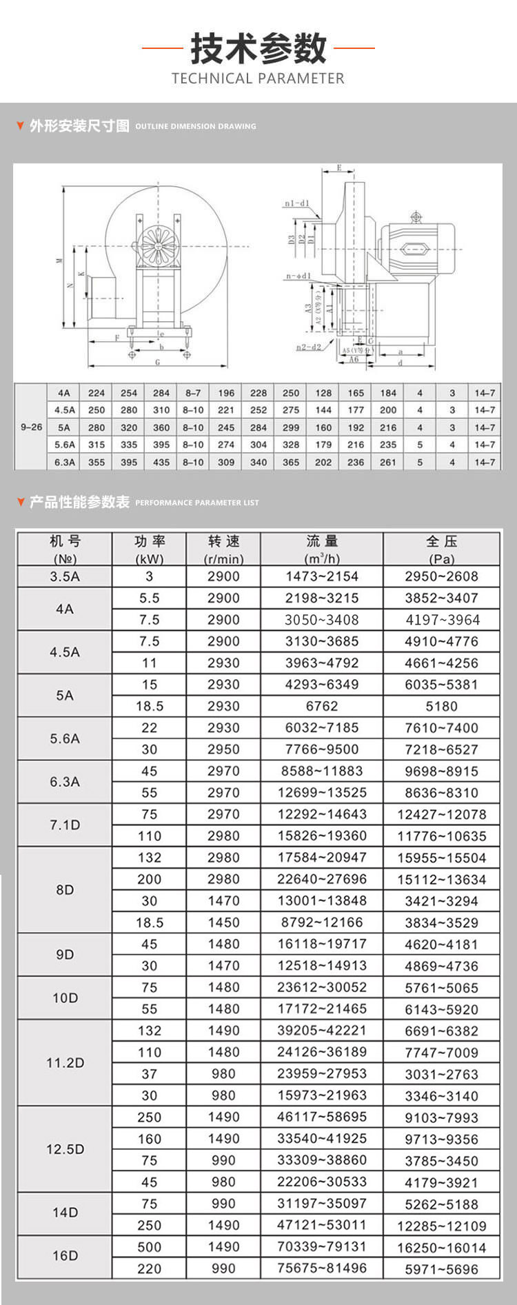 9- 26型高壓離心通風(fēng)機(jī)-般用于高壓強(qiáng)制通風(fēng),還可廣泛 應(yīng)用于輸送物料,以及輸送無腐蝕、不自燃、不含有黏性物質(zhì)的 氣體介質(zhì)。