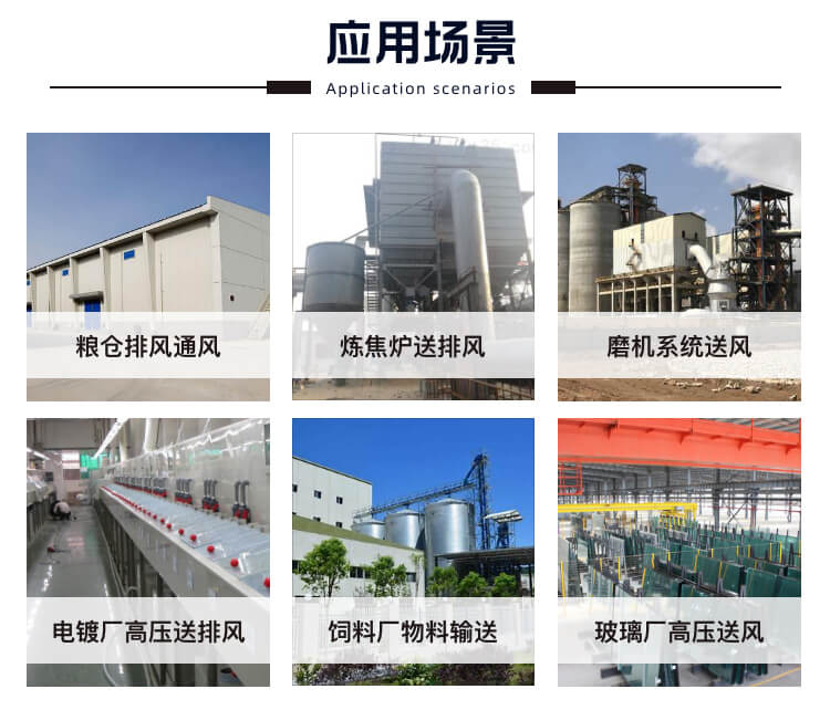 一般用于鍛冶爐、玻璃、電鍍、陶瓷、無線電等行業(yè)高壓強(qiáng)制通風(fēng),并可廣泛用于糧食、飼料、礦粉等加工行業(yè)的物料輸送及紙箱機(jī)械設(shè)備、鋼化玻璃設(shè)備等配套使用。輸送的介質(zhì)為空氣和其它不自燃、對(duì)人體無害、無腐蝕性氣體,氣體內(nèi)不允許有粘性物質(zhì),所含的塵土及硬質(zhì)顆粒物不大于150mg/m3,一般通風(fēng)換氣時(shí)使用溫度不得超過80℃。