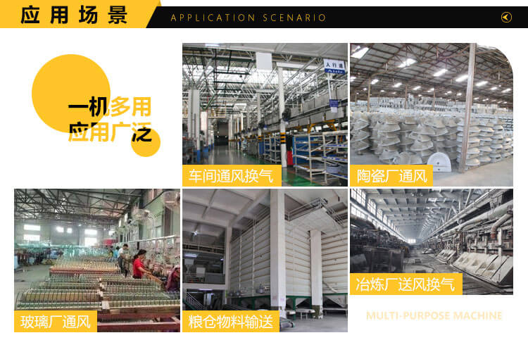 一般用于鍛冶爐、玻璃、陶瓷、電池、無線電等行業(yè)高壓強制送排風(fēng),糧食、飼料、礦粉等加工行業(yè)的物料輸送,紙箱機械設(shè)備、鋼化玻璃設(shè)備等配套使用。