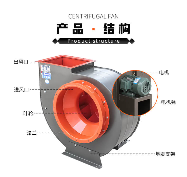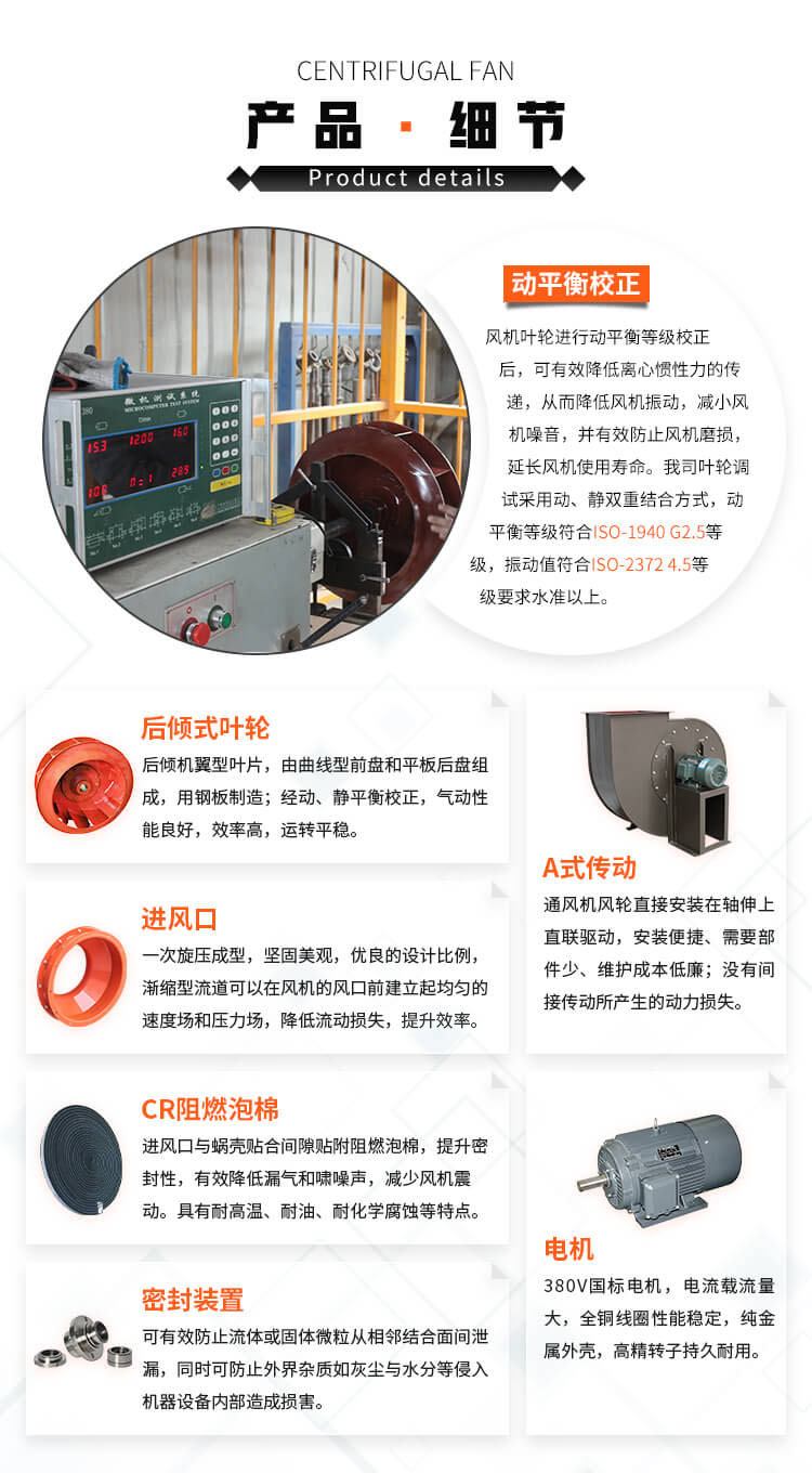 此款風(fēng)機屬于中、低壓高效率離心通風(fēng)機,后傾葉片、運行平穩(wěn)、效率高、堅固耐用等特點。