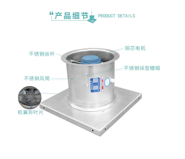 底座及風筒采用優(yōu)質(zhì)鋼板,風帽采用玻璃鋼精工制作而成。