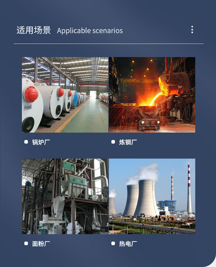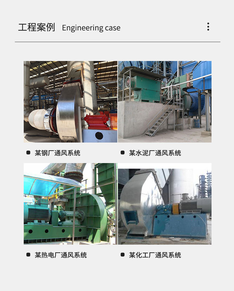 適用于工業(yè)鍋爐、生活鍋爐或高溫烘烤設(shè)備的熱風(fēng)循環(huán)、除塵、排塵、鍋爐引風(fēng)、物料輸送等