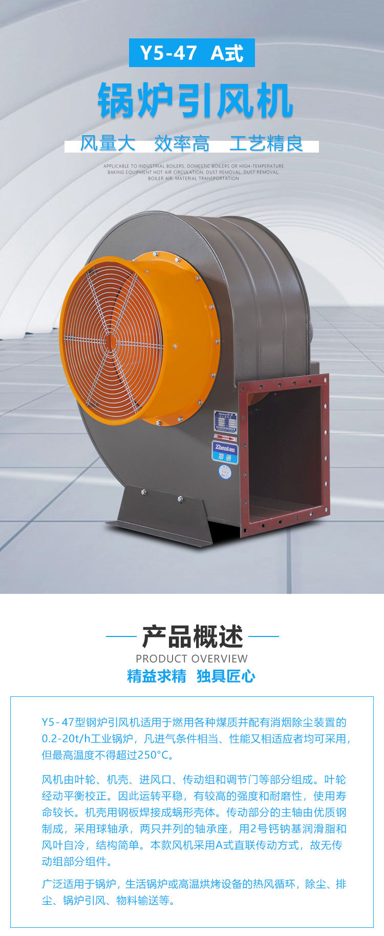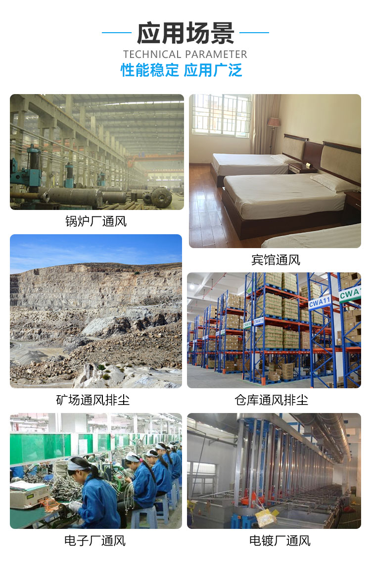 廣泛適用于鍋爐,生活鍋爐或高溫烘烤設(shè)備的熱風(fēng)循環(huán),除塵、排塵、鍋爐引風(fēng)、物料輸送等。