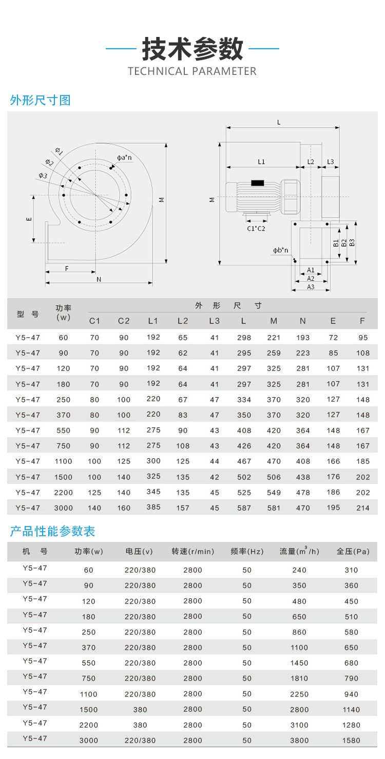 Y5- 47型鋼爐引風(fēng)機(jī)適用于燃用各種煤質(zhì)并配有消煙除塵裝置的0.2-20t/h工業(yè)鍋爐,凡進(jìn)氣條件相當(dāng)、性能又相適應(yīng)者均可采用,但最高溫度不得超過250°C。風(fēng)機(jī)由葉輪、機(jī)殼、進(jìn)風(fēng)口、傳動(dòng)組和調(diào)節(jié)門門等部分組成。葉輪經(jīng)動(dòng)平衡校正。因此運(yùn)轉(zhuǎn)平穩(wěn),有較高的強(qiáng)度和耐磨性,使用壽命較長(zhǎng)。機(jī)殼用鋼板焊接成蝸形殼體。傳動(dòng)部分的主軸由優(yōu)質(zhì)鋼制成,采用球軸承,兩只并列的軸承座,用2號(hào)鈣鈉基潤(rùn)滑脂和風(fēng)葉自冷,結(jié)構(gòu)簡(jiǎn)單。本款風(fēng)機(jī)采用A式直聯(lián)傳動(dòng)方式,故無傳動(dòng)組部分組件。